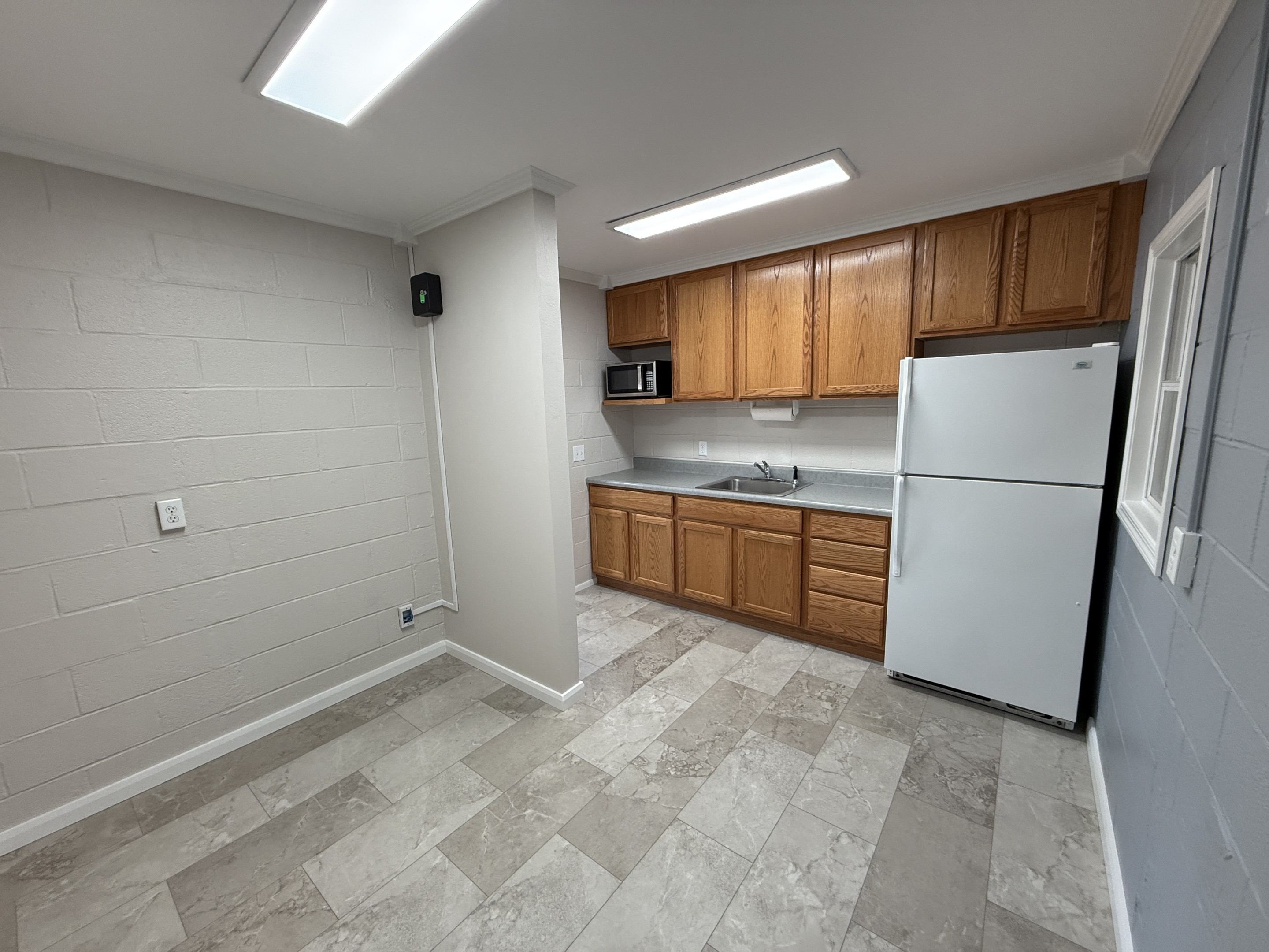 • Break area with counter space, sitting area, and upper/lower cabinets
