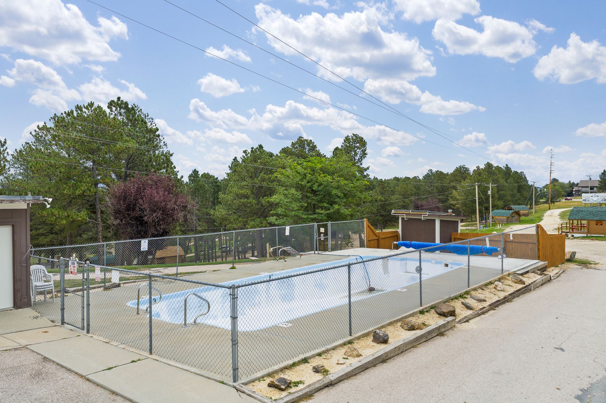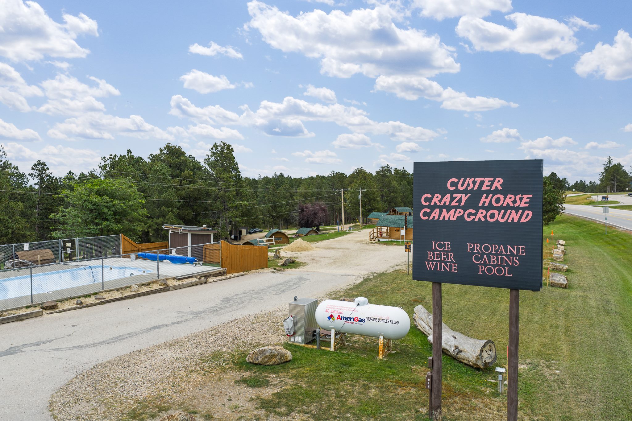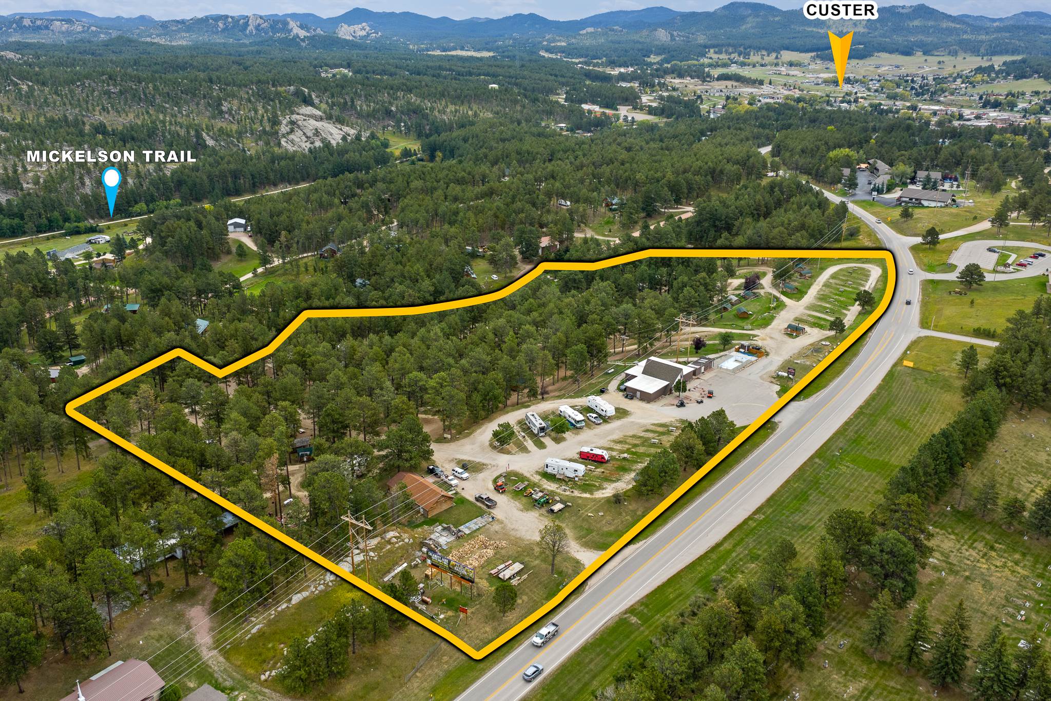 Rare opportunity to acquire both the real estate and established business of Custer Crazy Horse Campground in Custer, SD. Situated on13.40 acres along Hwy 385 with excellent visibility, this seasonal campground features 125 total sites, including 86 RV sites with full hook-ups, 24 sleeper cabins, 14 tent sites, and a deck house. The property offers a full range of guest amenities such as two bath/shower houses, an 18,000-gallon heated swimming pool, coin-operated laundry, reservation office and camp store, coffee hut, propane and dump stations, and multiple recreation areas. Additional land on-site provides capacity for expansion, offering a value-add opportunity for new ownership. The property also includes an owner’s residence/manager’s quarters, making this a turnkey investment with operational housing in place. Well-maintained grounds with mature pines and proximity to Crazy Horse Memorial, Custer State Park, and Mount Rushmore make this one of the most desirable campground offerings in the Black Hills.