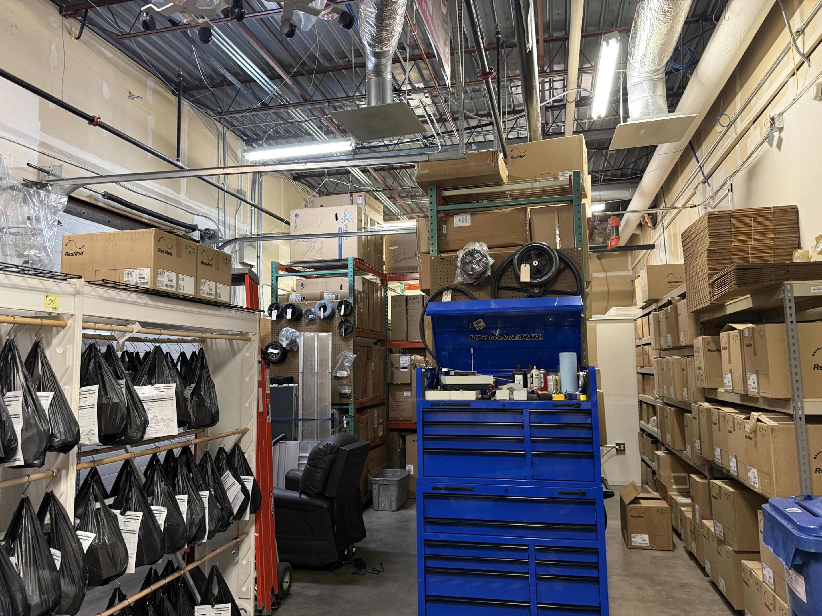 ⊲ Warehouse/storage in the back with an overhead door